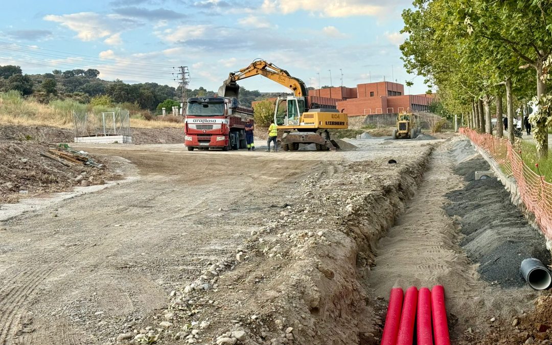 Los primeros trabajos se centran en la nivelación del terreno y la instalación de la canaleta de aguas pluviales, paso esencial para preparar el espacio antes del asfaltado y señalización.